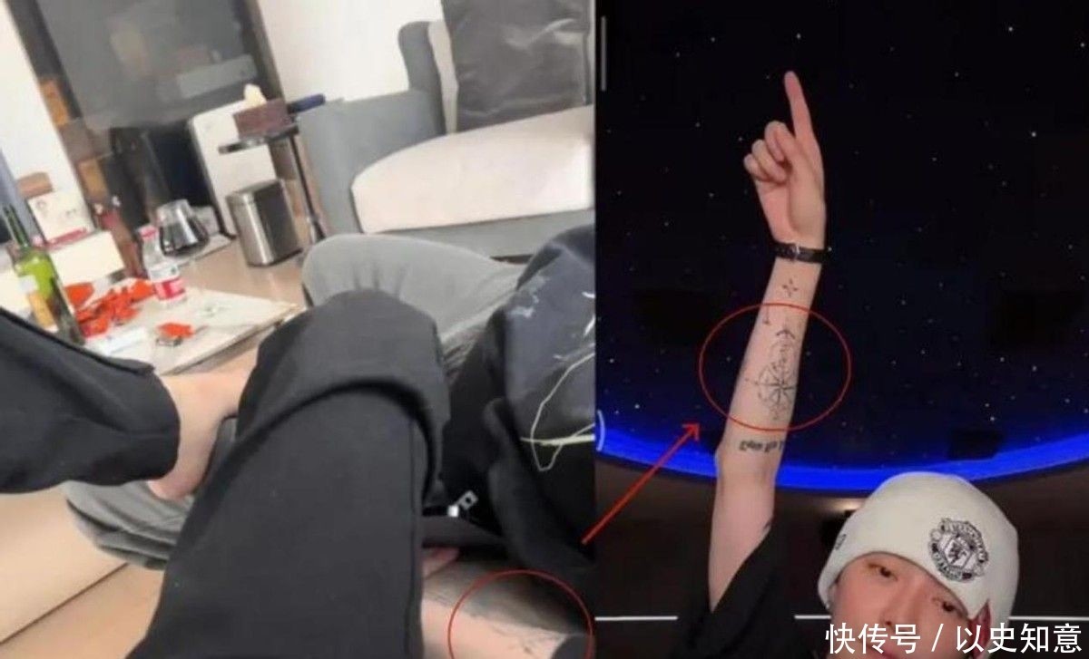 网友很快翻出鹿晗过往的公开照片,发现他不管是演唱会后台的路透,还是综艺里露出的手臂特写,上面的纹身位置、图案和纹路的走向都跟司晓迪爆料的照片里的高度相似。