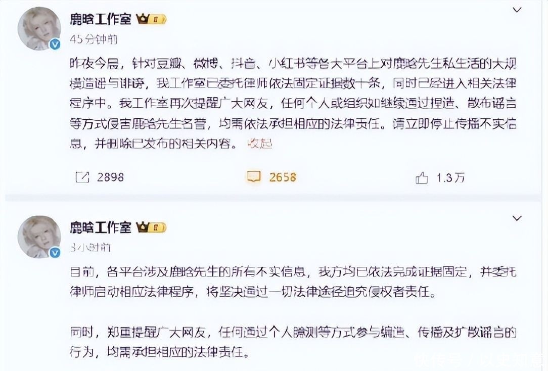 这边网友还在逐帧分析,鹿晗工作室已经火速出手了。