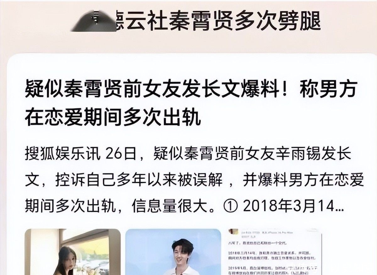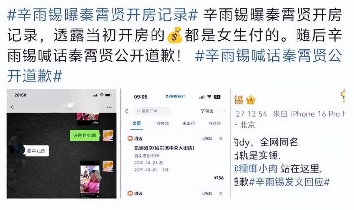 最早年,艺人辛雨锡实名举报秦霄贤恋爱期间出轨、向女方索要财物、实施冷暴力,当时司晓迪被指是这段关系中的第三者。