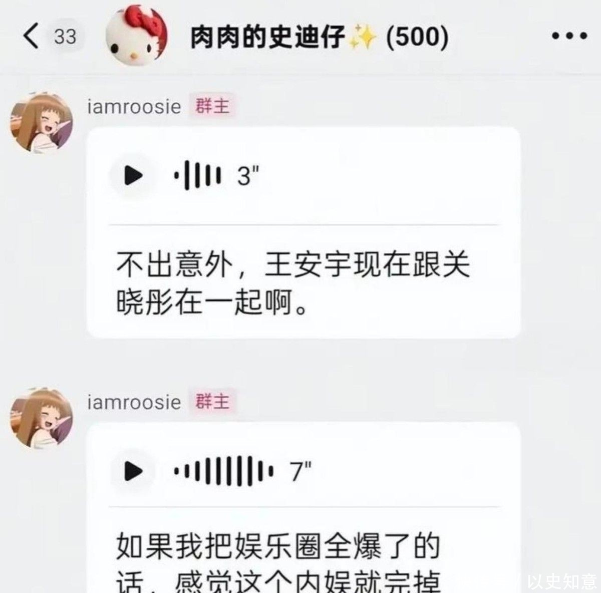她还在自己的粉丝群里爆料,说王安宇和关晓彤正在恋爱中,把没直接被点名的关晓彤和王安宇也拉进了风波。