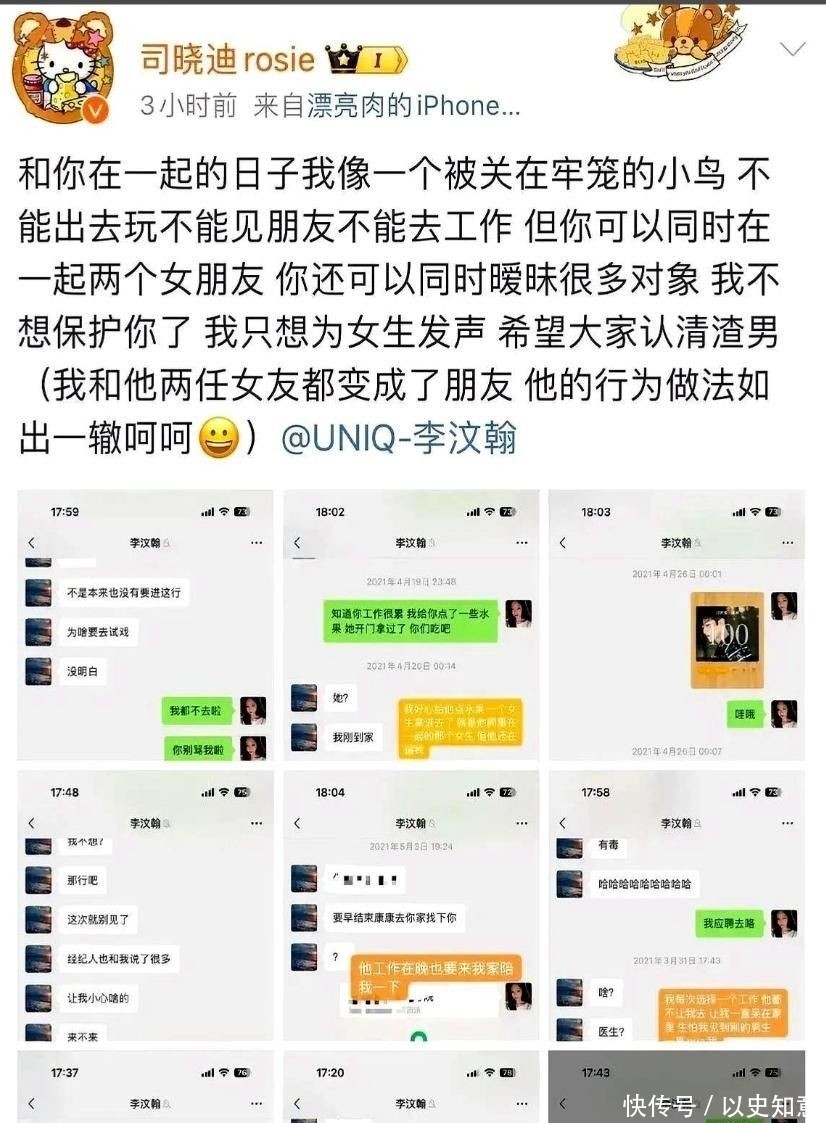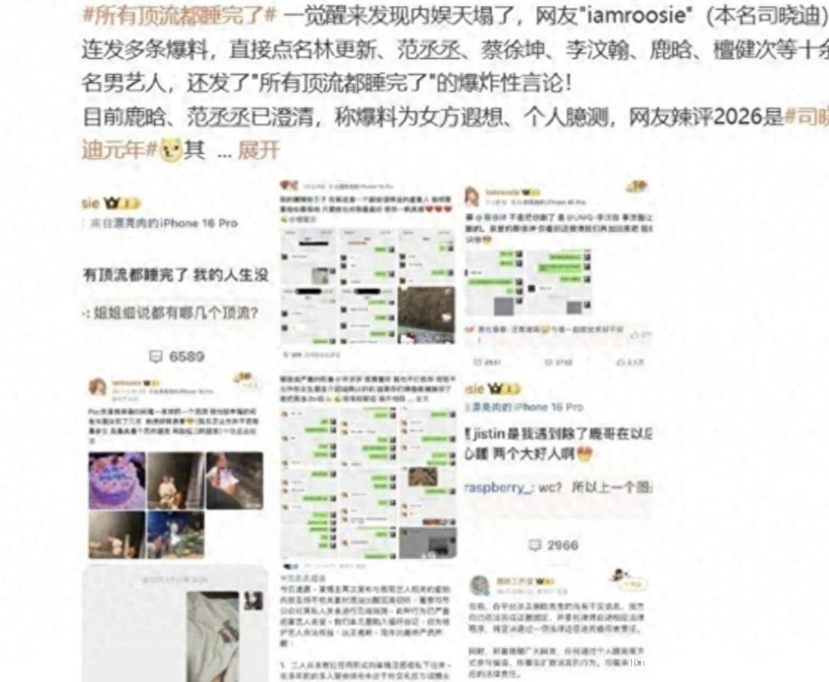 司晓迪的爆料堪称无差别扫射,每个被点到名的艺人都有专属“剧情”,首当其冲被重点“关照”的就是鹿晗。